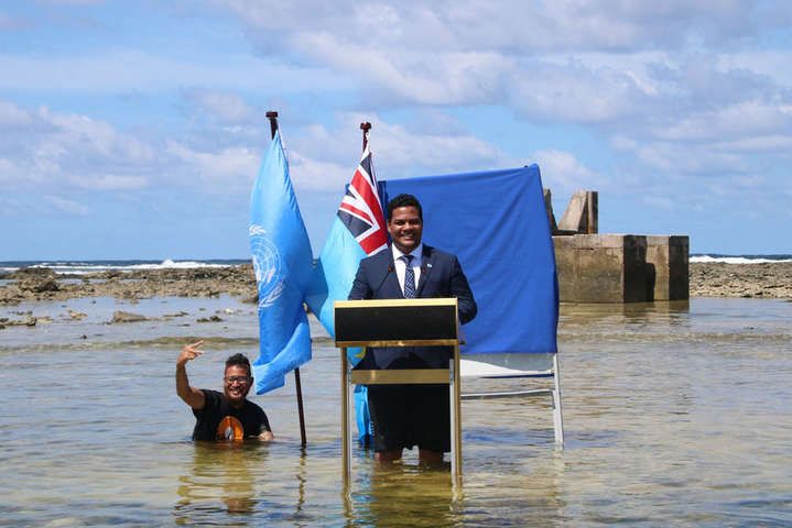 Министр Тувалу прославился после своего выступления для конференции и появления в сети фотографии, на которой он, одетый в деловой костюм, стоит по колено в воде. Кадры были сделаны на острове Фонгафале, где располагается столица государства. Таким образом власти Тувалу хотели привлечь внимание к проблеме изменения уровня мирового океана из-за климата.