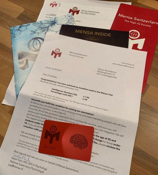 Тест проходил в оффлайн-формате и состоял из 45 вопросов. На выполнение даётся 20 минут. Спустя неделю он получил письмо от «Менсы», где ему сообщили о принятии в организацию. Его коэффициент интеллекта превосходит 135 по шкале Векслера - это показатель выше, чем коэффициент интеллекта у 99 процентов населения планеты.