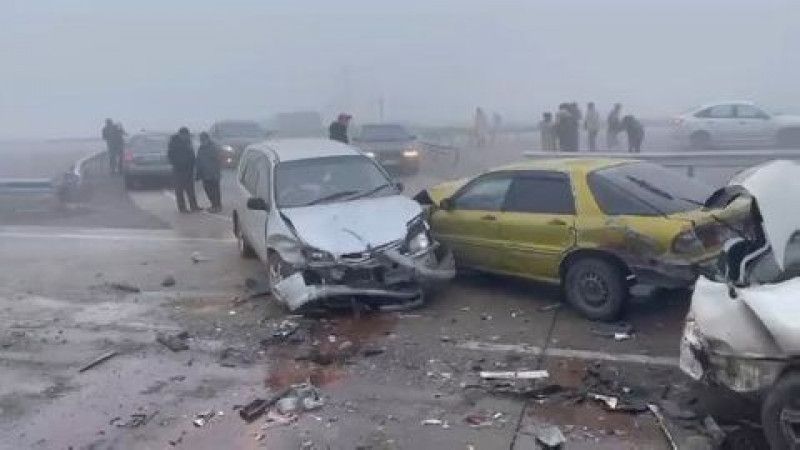 В социальных сетях публикуют видео с трассы в Алматинской области, где произошло массовое ДТП.