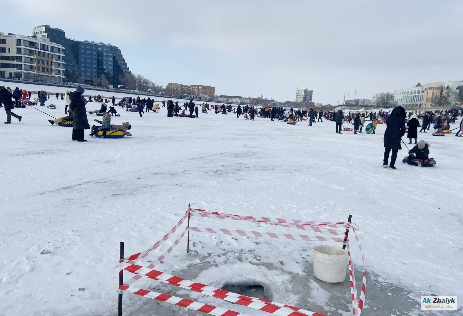 - В пятницу вечером, когда выпал снег, на льду одновременно собралось около 300 человек, - говорит дежурный спасатель Аслан КУМАР. - В связи с тем, что лед на правом берегу дал трещину, мы в целях безопасности попросили людей выходить на реку со стороны ФОК «Атырау» и обмотали лестницу с правого берега красной запретной лентой. Но никто не прислушивается к нашим предупреждениям, а зря.