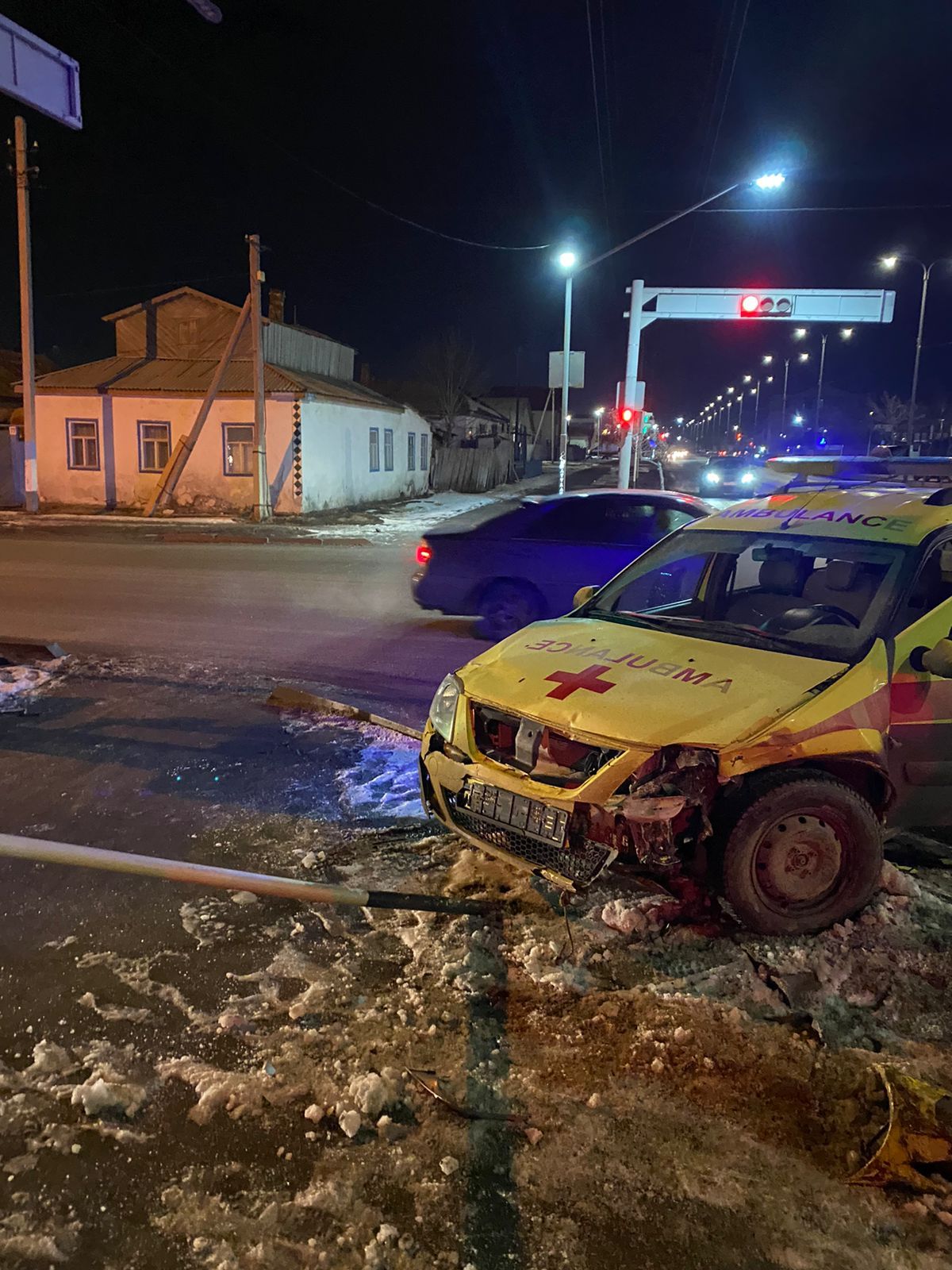 30 января в 21:40 в Атырау на пересечении улиц Досмухамедова и Тайманова Toyota Camry, ехавшая на зеленый цвет светофора, столкнулся с автомашиной «скорой помощи» Lada Largus. После столкновения «скорая» врезалась в дорожный знак на обочине.