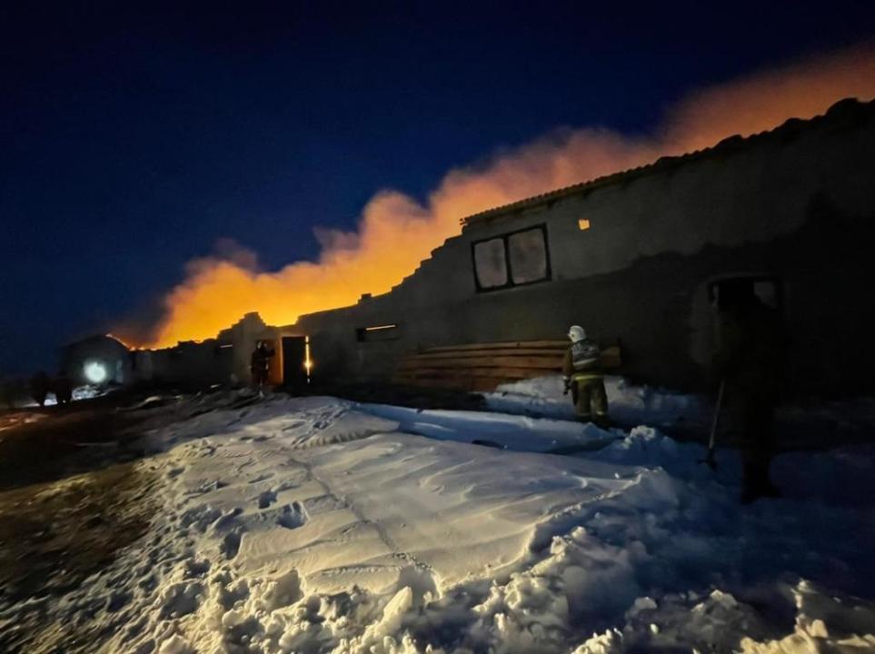 «31 января 2022 года в 7.15 часов на пульт 101 поступило сообщение о том, что в 5 км от с.Алгабас Байдибекского района на территории крестьянского хозяйства произошло загорание двухэтажного строения для содержания домашнего скота. На первом этаже строения содержалось мелко-рогатый скот, на втором этаже складированное сено. Расстояние от крестьянского хозяйства до ближайшей пожарной части 40 км. Огнеборцы доехали до места пожара за 40 минут.