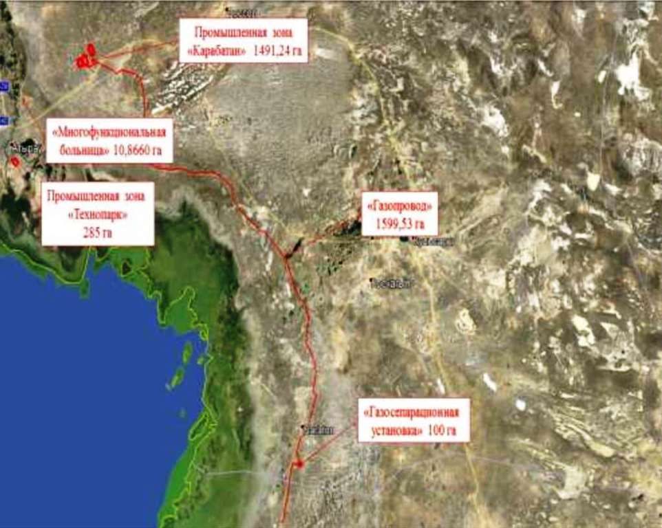 Территория СЭЗ составляет 3 486,636 га и включает в себя три площадки, которые находятся на Тенгизе, Карабатане и в городе Атырау. Площадка «Карабатан» располагается на территории 1491,24 га, она предназначена для крупнотоннажных производств базовой нефтехимии. Площадка «Технопарк» в городе Атырау размером в 285 га – промышленный и бизнес-парк для предприятий малого и среднего бизнеса. На площадке «Тенгиз» в 100 га – газосепарационная установка. Плюс к этому от площадки «Тенгиз» до площадки «Карабатан» на территории 1599,53 га тянется «продуктопровод».