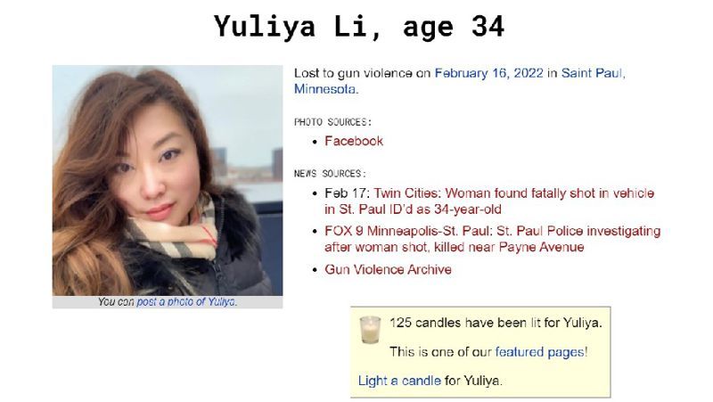 На сайте национального мемориала жертвам насилия с применением огнестрельного оружия размещена информация о гибели Юлии Ли.