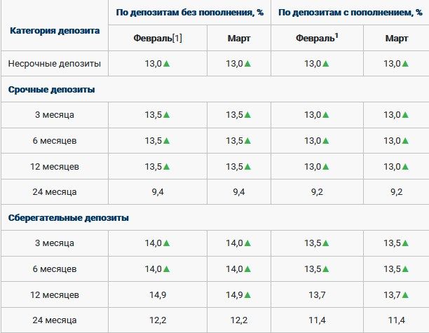 - сберегательным депозитам на 12 месяцев на март 2022 года.