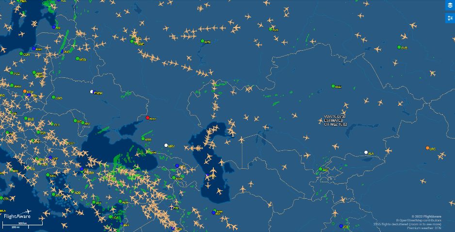 При этом часть потока воздушного движения перенаправлена с Черноморского региона на территорию Республики Казахстан. За последние сутки через воздушное пространство страны выполнено 257 ранее не планировавшихся рейсов.