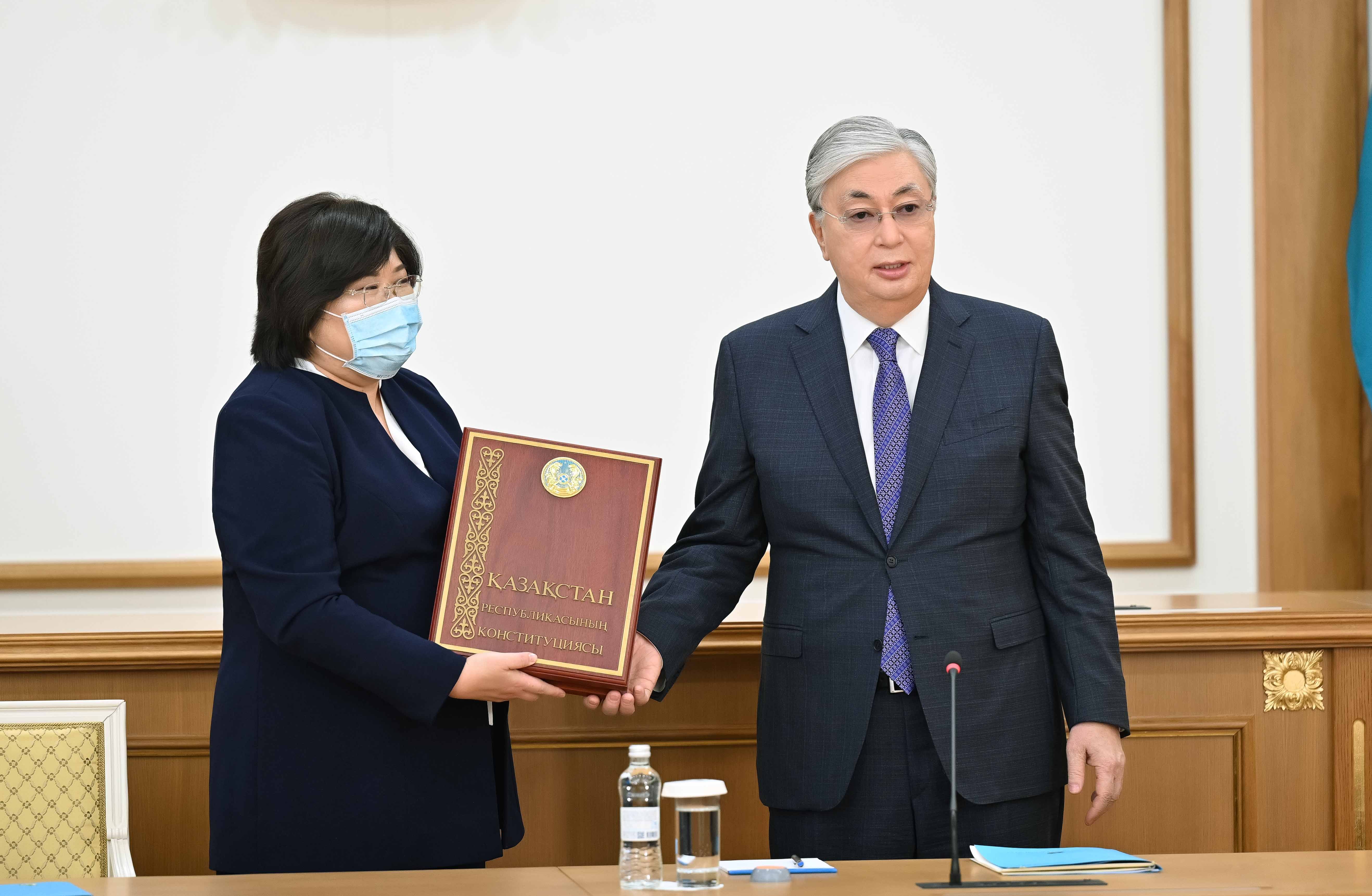 «Полагаю, что данный состав судей способен успешно выполнить стоящие перед ними задачи огромной государственной важности и оправдать ожидания общества и граждан. В состав Конституционного Суда вошли видные ученые, занимающиеся наукой, а также юристы, обладающие многолетним опытом работы в различных сферах. В итоге получился хороший сплав теории и практики. Председатель Конституционного Суда Эльвира Азимова долгое время работала в органах юстиции, занималась вопросами защиты прав человека, представляла интересы государства на международной арене. Этот опыт будет ей весьма полезен на новом поприще. Проделан большой объем работы по разработке нормативной базы и принципов деятельности Конституционного Суда. Теперь, возможно, понадобится усовершенствовать эту базу по мере необходимости в ходе деятельности Конституционного Суда. В целом, созданы все условия для того, чтобы вновь созданный институт мог обеспечить верховенство Основного закона на всей территории страны», – сказал Касым-Жомарт Токаев.