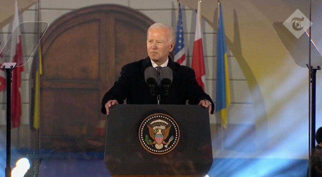"Я только что вернулся из Киева, он стоит, он сильный, и самое главное - он свободный", - начал свою речь у Королевского замка в Варшаве Байден.