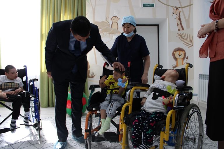 Сначала они посетили Центр оказания специальных социальных услуг №1 в селе Сарайшык. В центре проживают 310 взрослых пациентов с психоневрологическими расстройствами, 120 из них имеют глубокие психические расстройства.