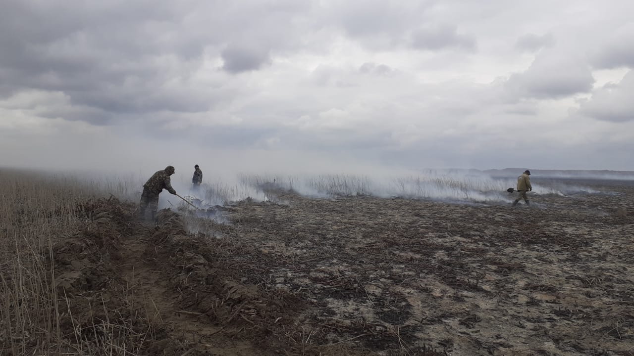 Открытого огня они не нашли, но обнаружили, что на территории природного резервата "Акжайык" тлеют торфяные корни камыша на площади около 3 гектаров.