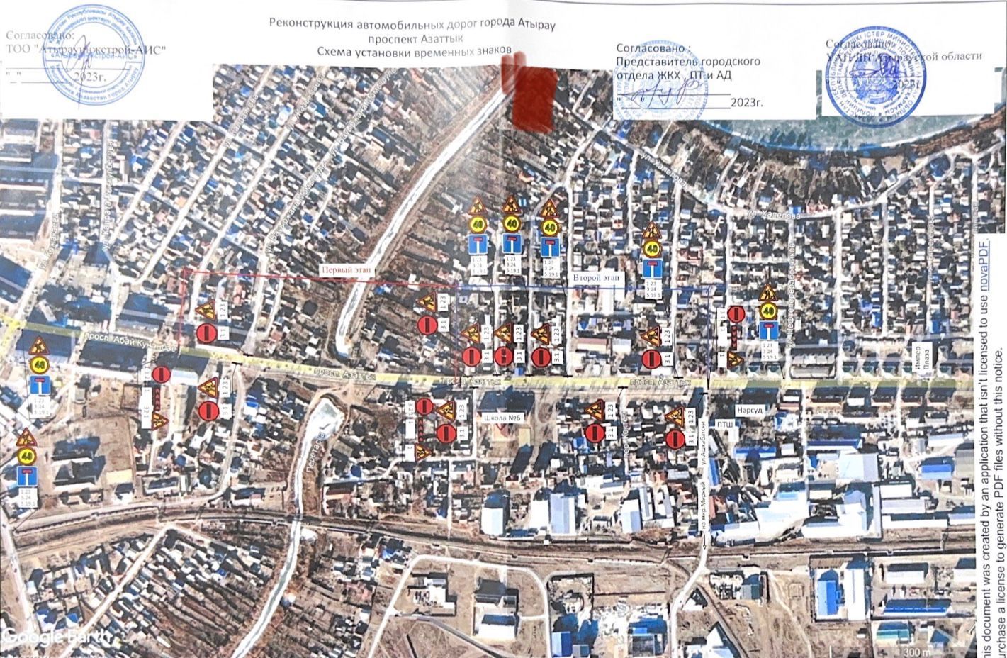 В пресс-службе акимата Атырау предупредили о временном закрытии движения с 20:00 20 апреля. Срок окончания работ на 350-метровом участке по проспекту Азаттык не сообщается.