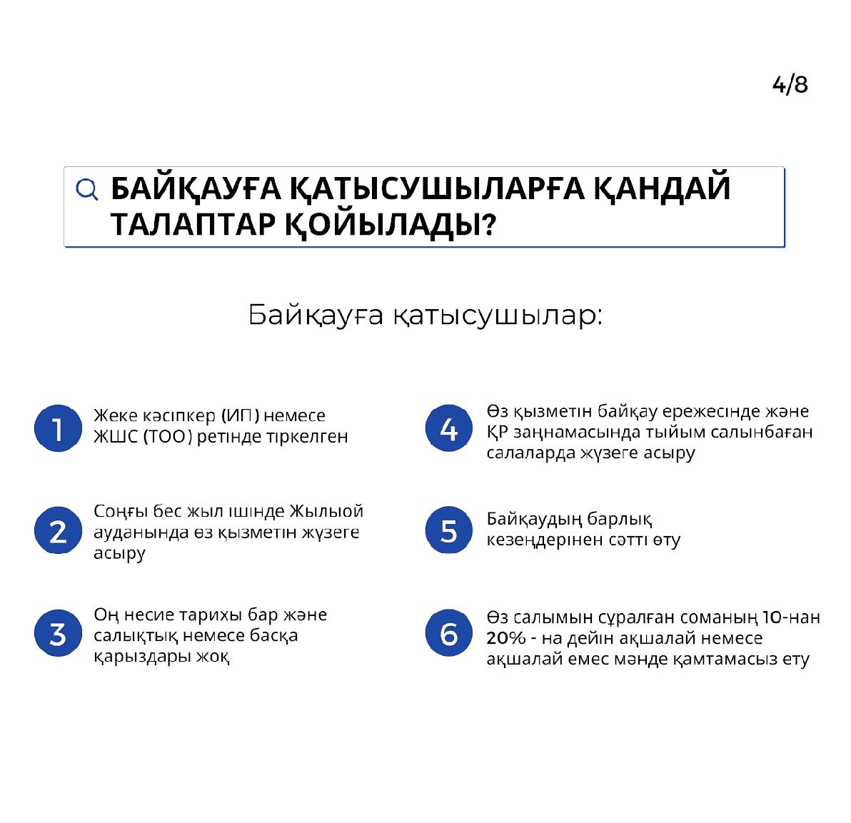 - Осуществлять свою деятельность в сферах не запрещенных положением конкурса и законодательством РК