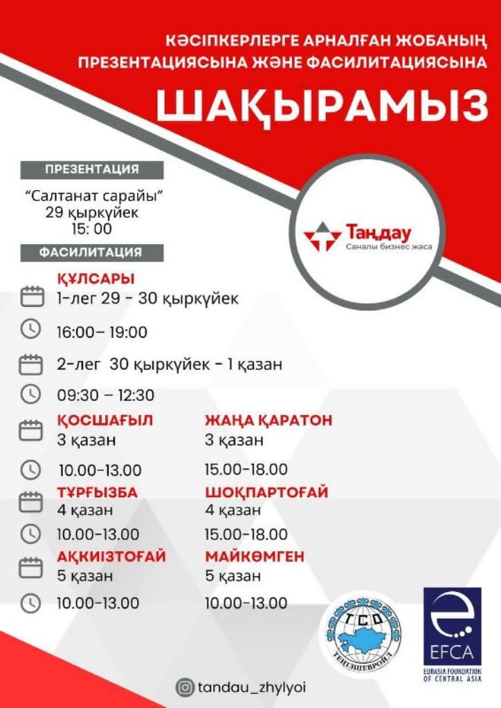 Полная информация и положение конкурса будут опубликованы на www.ef-ca.kz,а так же на страничке в инстаграм @tandau.
